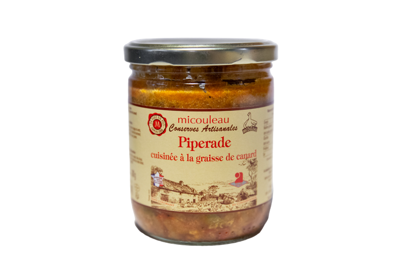 Plongez dans les saveurs authentiques du Sud-Ouest avec cette Piperade artisanale, mijotée lentement à la graisse de canard. Tomates, poivrons et oignons se marient dans une recette traditionnelle, riche en goût et en convivialité.