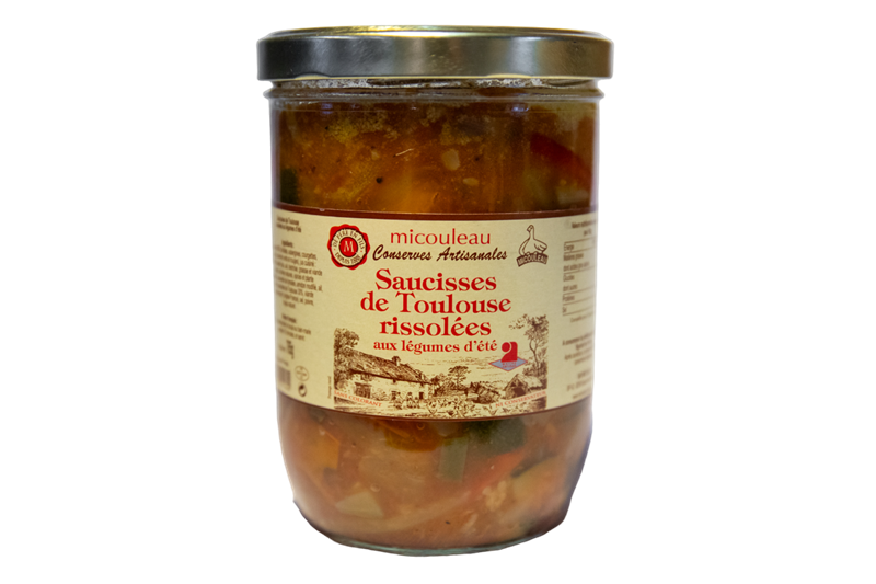 Un plat savoureux du Sud-Ouest où les saucisses de Toulouse confites à la graisse de canard rencontrent des légumes d’été mijotés : tomates, poivrons et courgettes. La cuisson lente révèle une texture fondante et un équilibre parfait entre richesse et fraîcheur.